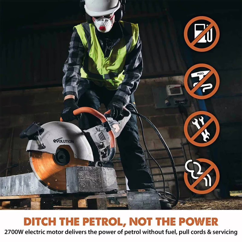 Новият R350DCT е най-големият и най-мощен електрически фугорез на Evolution, създаден за професионални строителни площадки. С мощен двигател 2 700 W , той лесно задвижва 350 мм диск и предлага впечатляваща дълбочина на рязане от 130 мм . Системата за автоматично подаване на вода за намаляване на праха и електронната защита на мотора правят използването му по-лесно и безопасно от всяка бензинова машина.